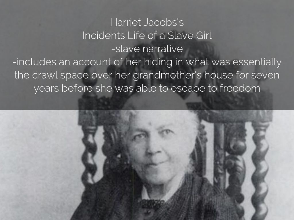 -includes an account of her hiding in what was essentially the crawl space over her grandmother's house for seven years before she was able to escape to freedom