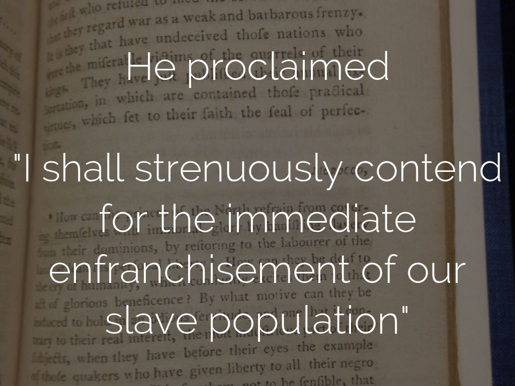 "I shall strenuously contend for the immediate enfranchisement of our slave population"