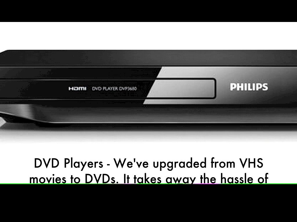 DVD Players - We've upgraded from VHS movies to DVDs. It takes away the hassle of going to the movies every time you want to watch a movie. Without it you wouldn't be able to watch your favorite movie anytime you want.