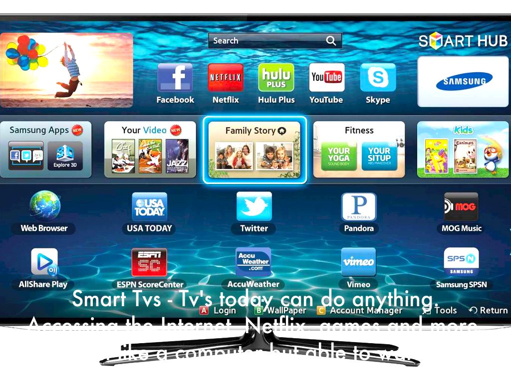 Smart Tvs - Tv's today can do anything. Accessing the Internet, Netflix, games and more. It's just like a computer but able to watch tv.