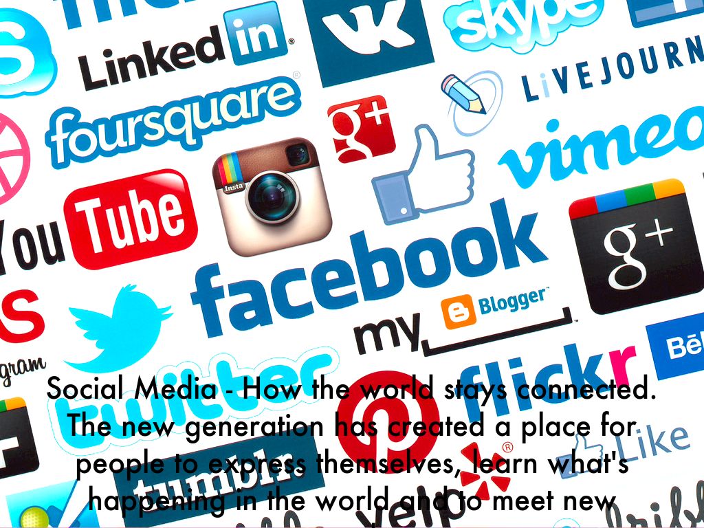 Social Media - How the world stays connected. The new generation has created a place for people to express themselves, learn what's happening in the world and to meet new people.