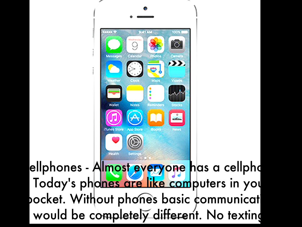 Cellphones - Almost everyone has a cellphone. Today's phones are like computers in your pocket. Without phones basic communication would be completely different. No texting, FaceTime or calls while on the go.