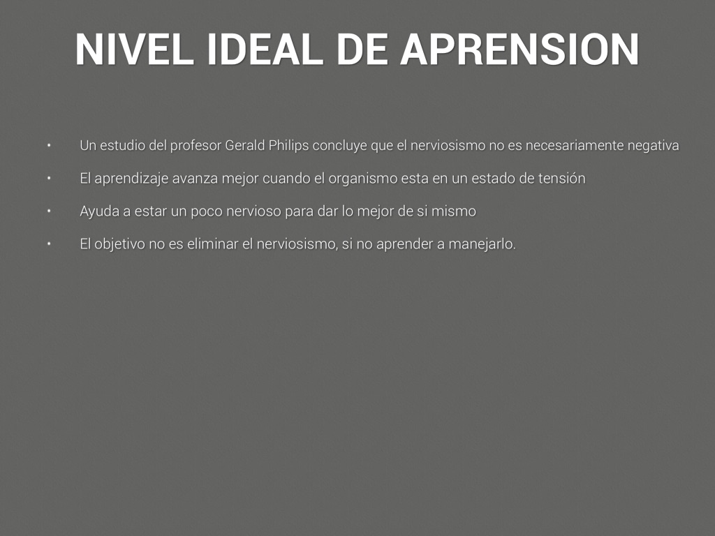 • El objetivo no es eliminar el nerviosismo, si no aprender a manejarlo.