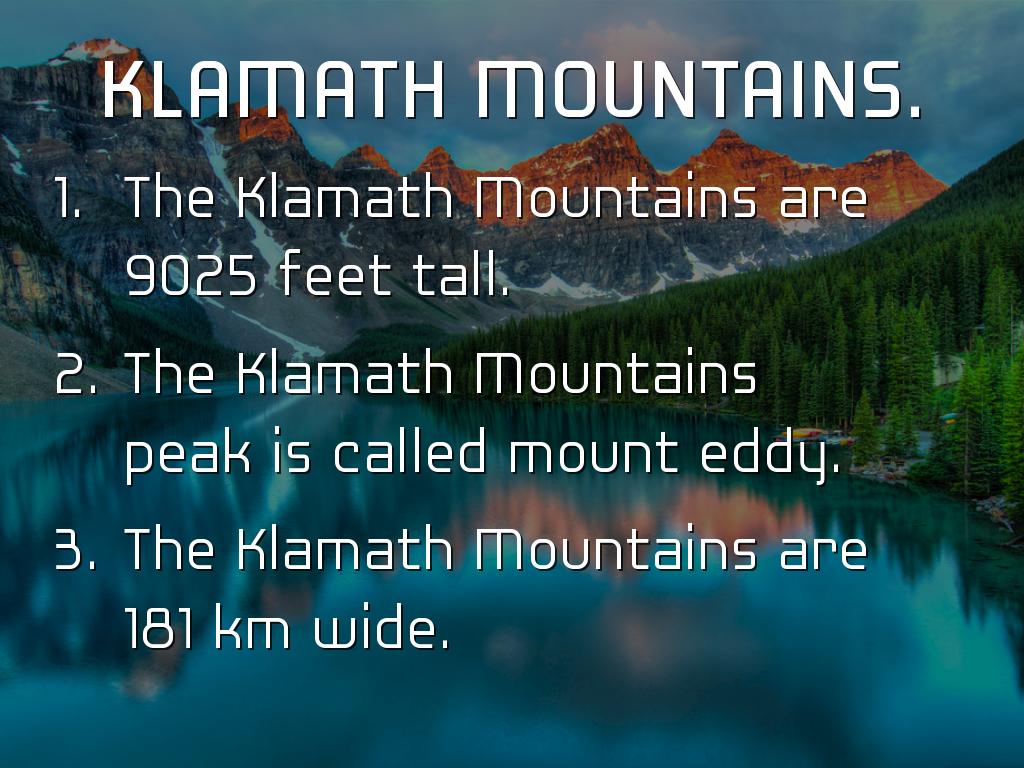 The Klamath Mountains are 9025 feet tall.