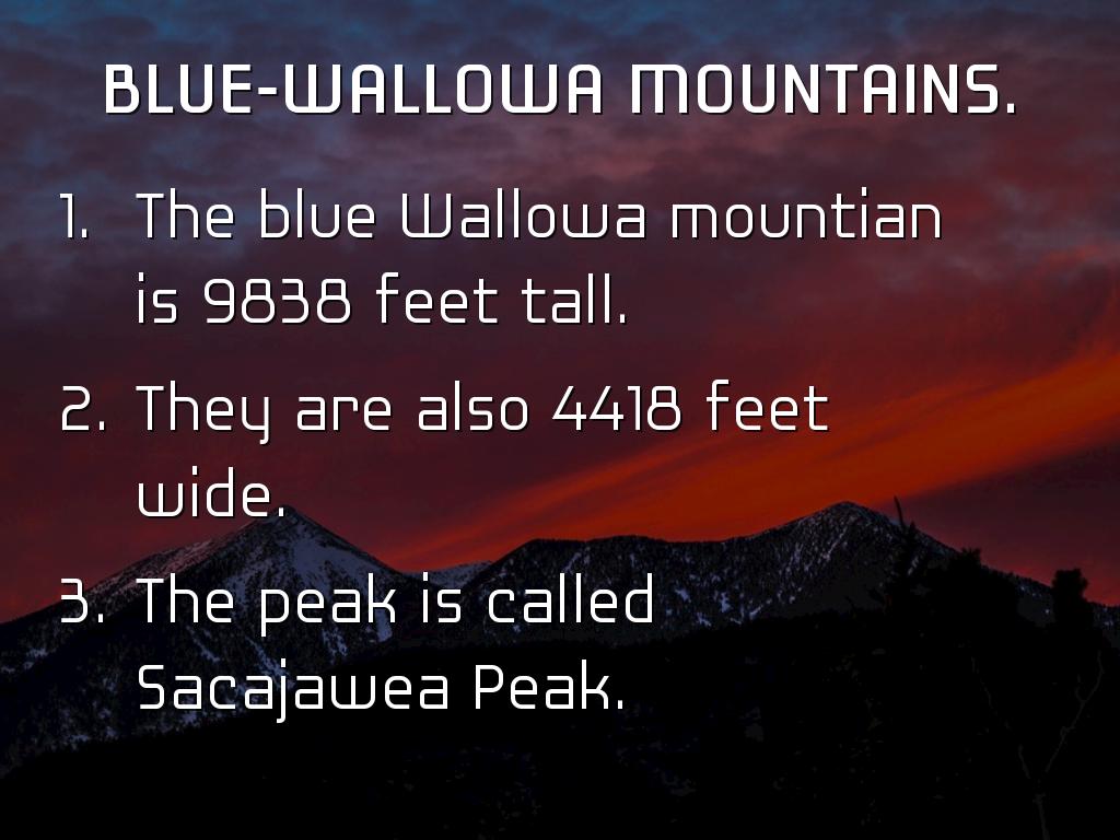 The blue Wallowa mountian is 9838 feet tall.