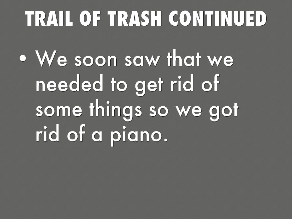 - We soon saw that we needed to get rid of some things so we got rid of a piano.