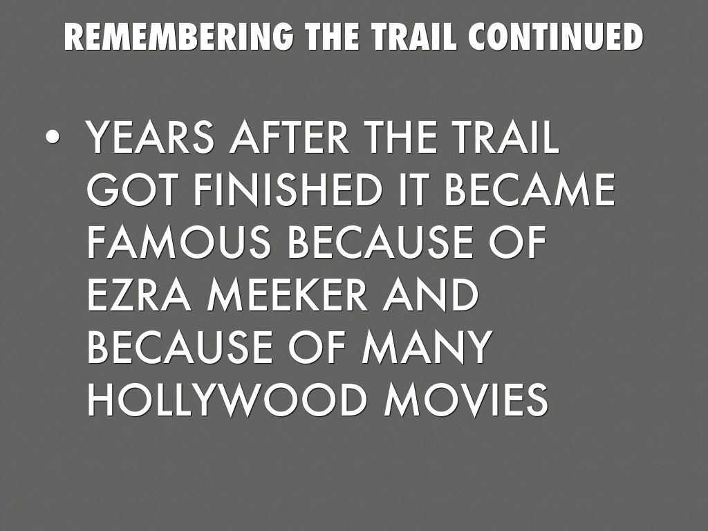 - YEARS AFTER THE TRAIL GOT FINISHED IT BECAME FAMOUS BECAUSE OF EZRA MEEKER AND BECAUSE OF MANY HOLLYWOOD MOVIES
