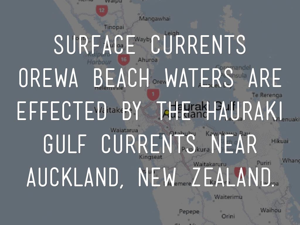 Orewa Beach waters are effected by the Hauraki Gulf currents near Auckland, New Zealand.