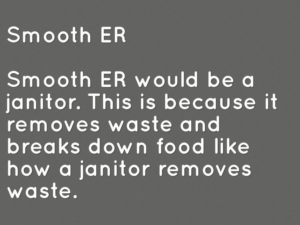 Smooth ER would be a janitor. This is because it removes waste and breaks down food like how a janitor removes waste.