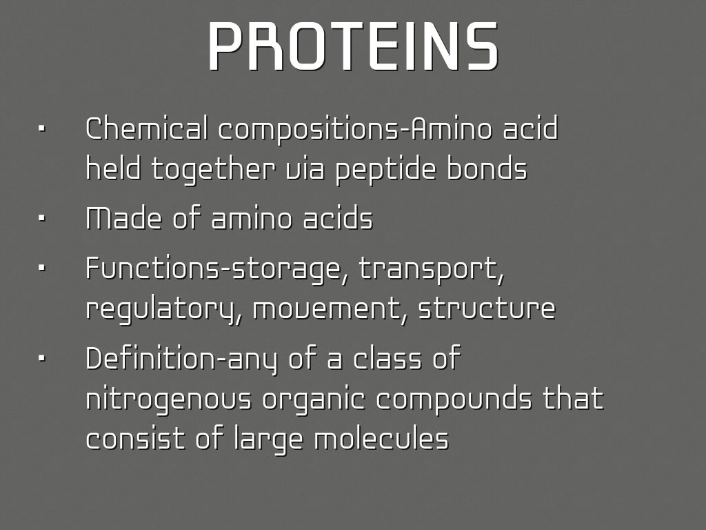 • Definition-any of a class of nitrogenous organic compounds that consist of large molecules