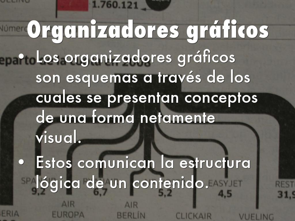 • Los organizadores gráficos son esquemas a través de los cuales se presentan conceptos de una forma netamente visual.