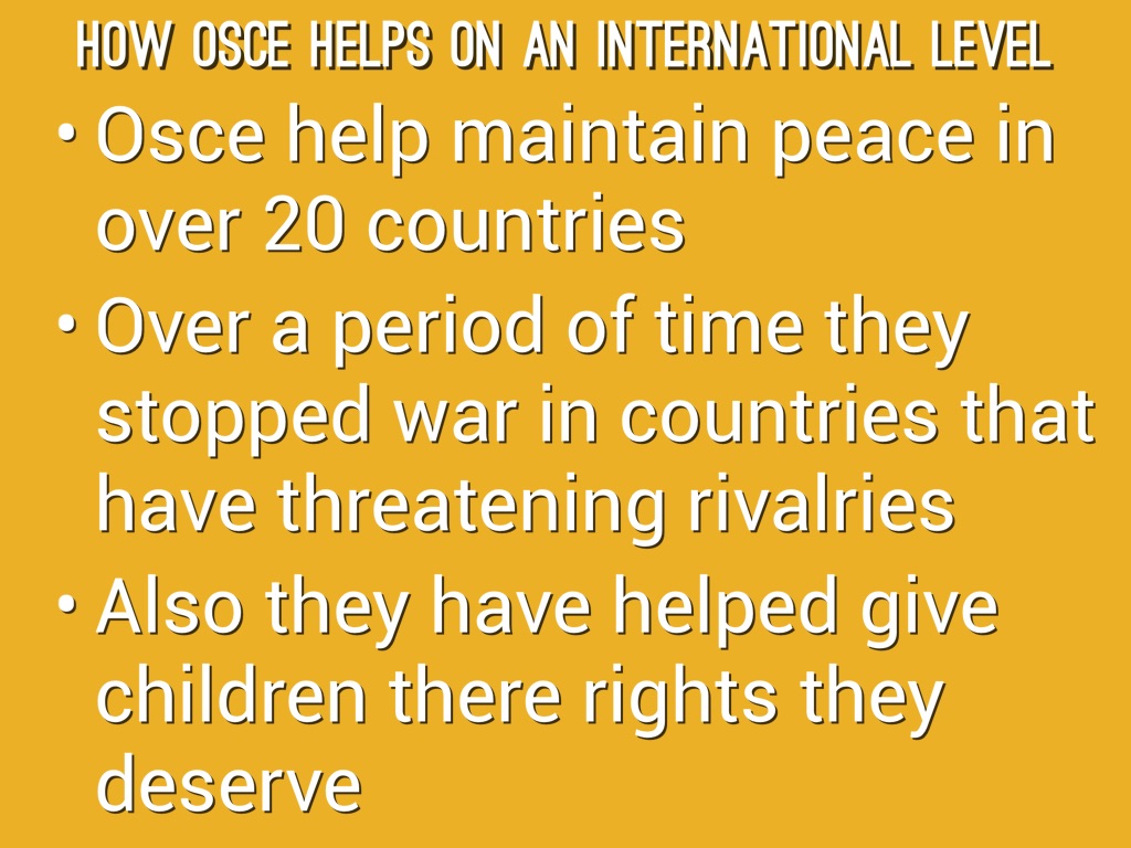 Osce helps maintain peace and help the enviorment.