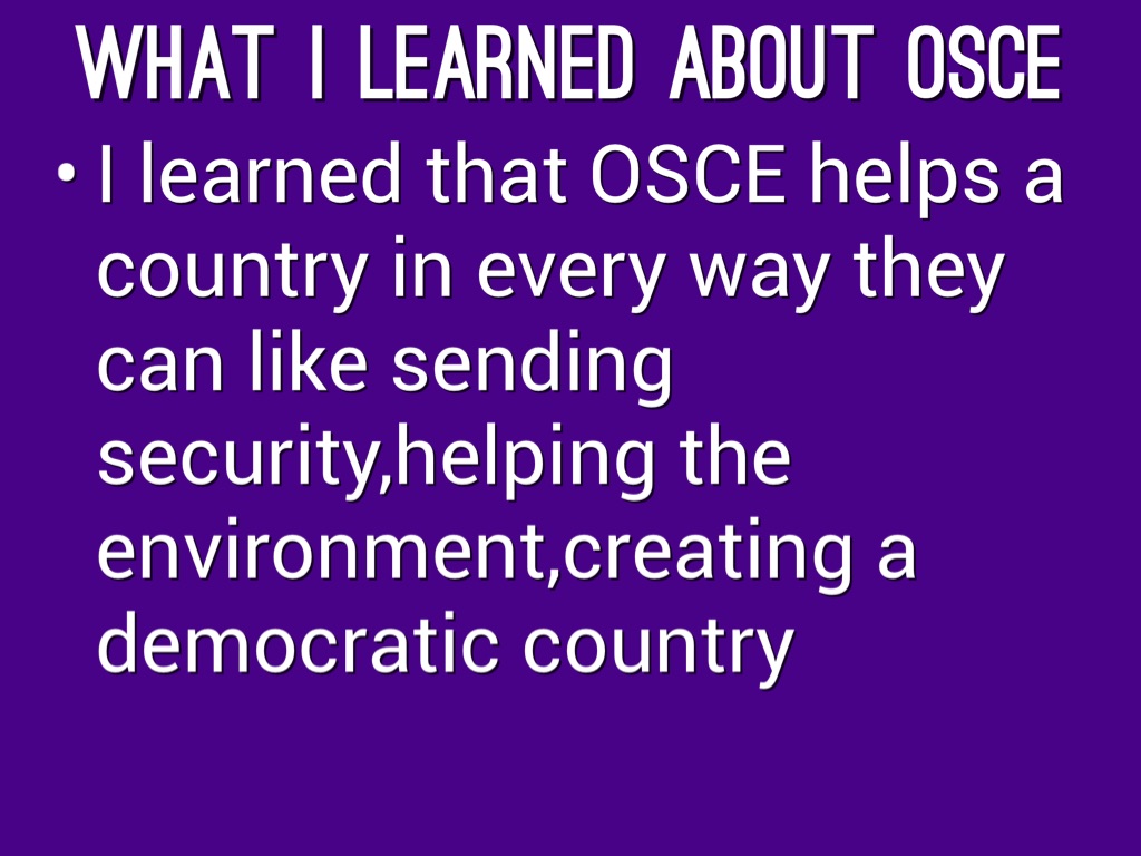 I learned that OSCE helps a country in every way they can like sending security,helping the environment,creating a democratic country