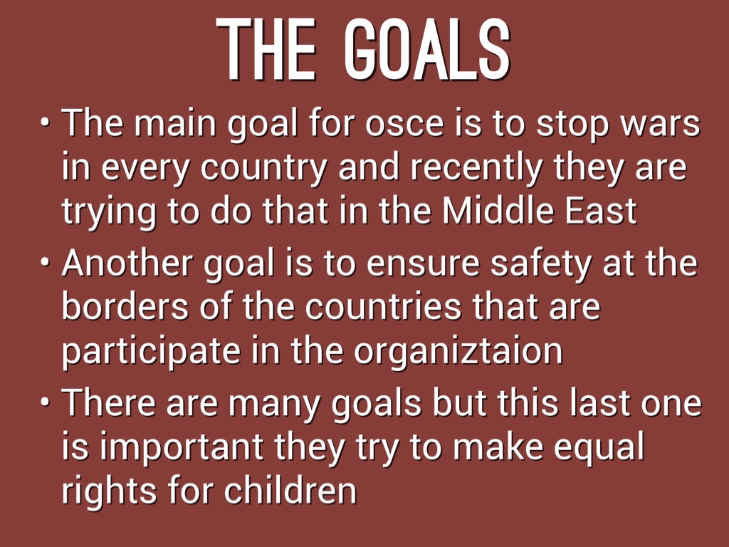 The main goal for osce is to stop wars in every country and recently they are trying to do that in the Middle East