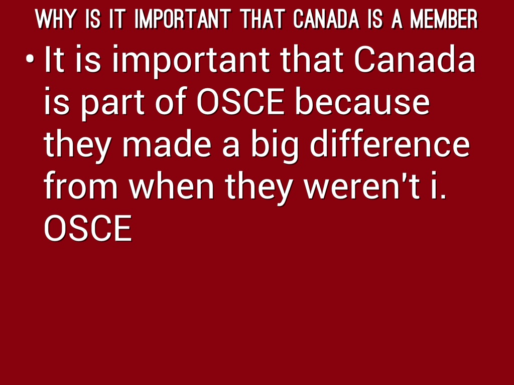 It is important that Canada is part of OSCE because they made a big difference from when they weren't i. OSCE