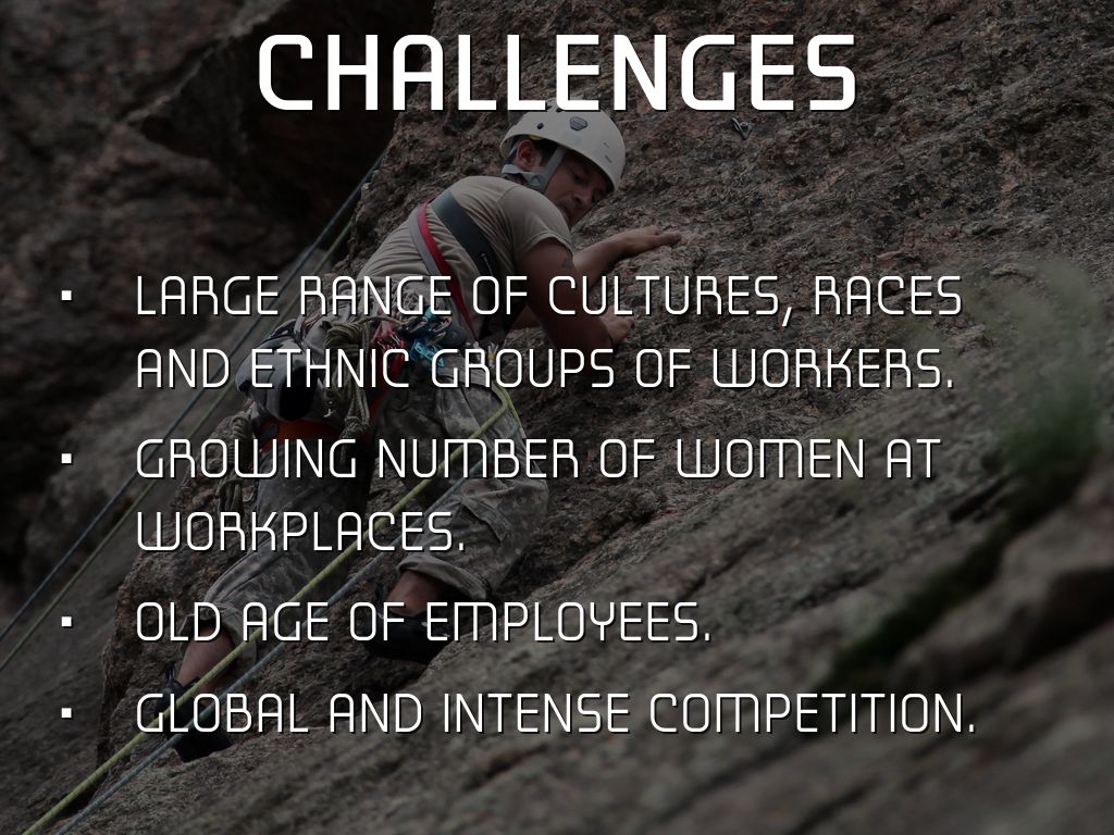 LARGE RANGE OF CULTURES, RACES AND ETHNIC GROUPS OF WORKERS.