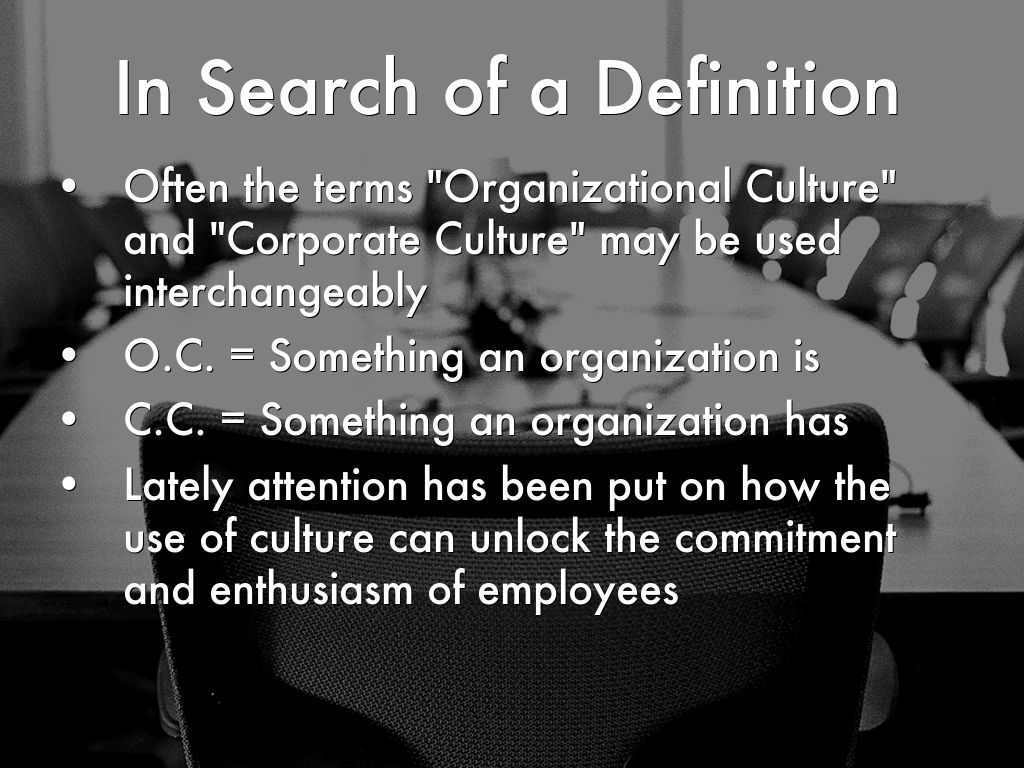 Often the terms "Organizational Culture" and "Corporate Culture" may be used interchangeably