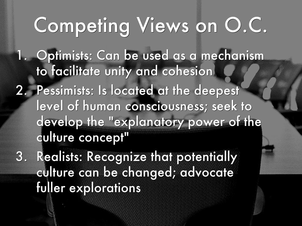 Pessimists: Is located at the deepest level of human consciousness; seek to develop the "explanatory power of the culture concept"