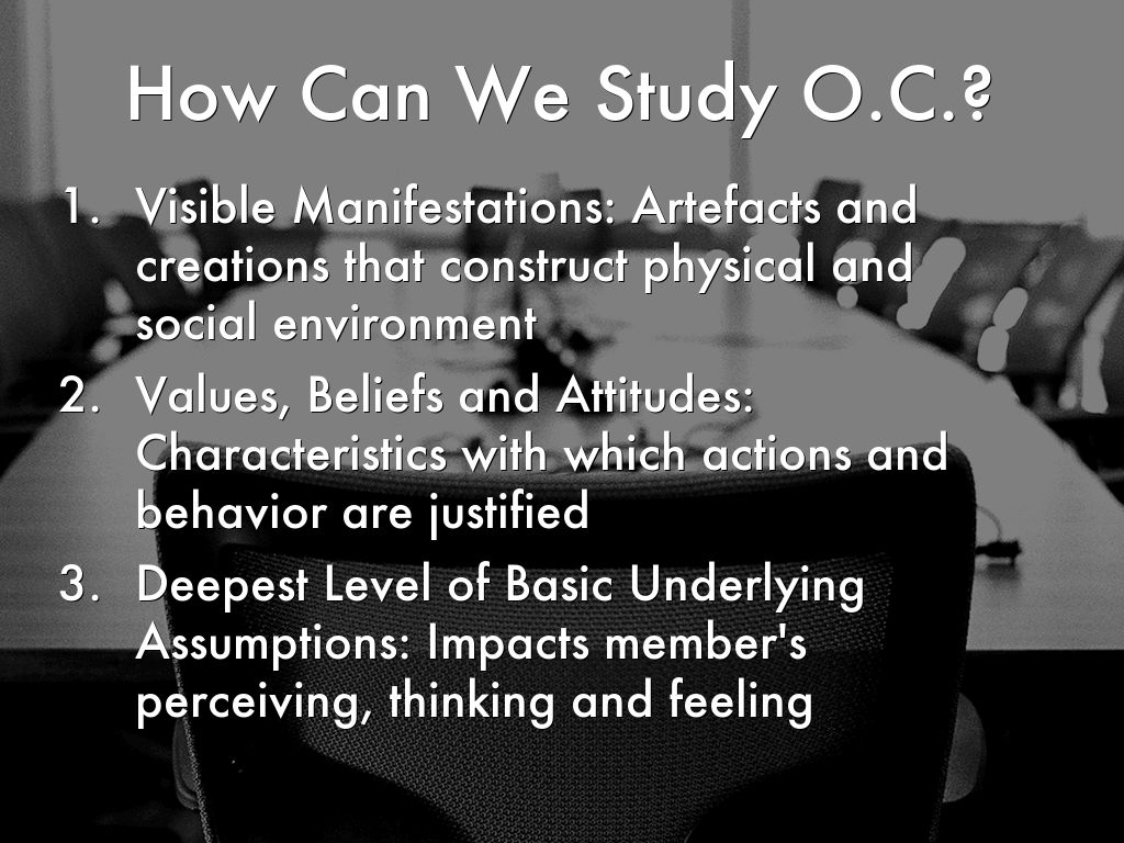 Values, Beliefs and Attitudes: Characteristics with which actions and behavior are justified