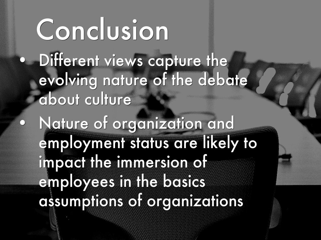 Nature of organization and employment status are likely to impact the immersion of employees in the basics assumptions of organizations