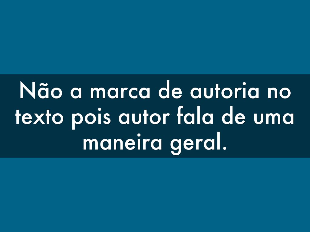 Não a marca de autoria no texto pois autor fala de uma maneira geral.