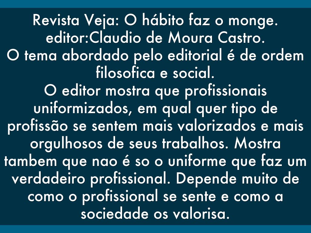 Revista Veja: O hábito faz o monge.