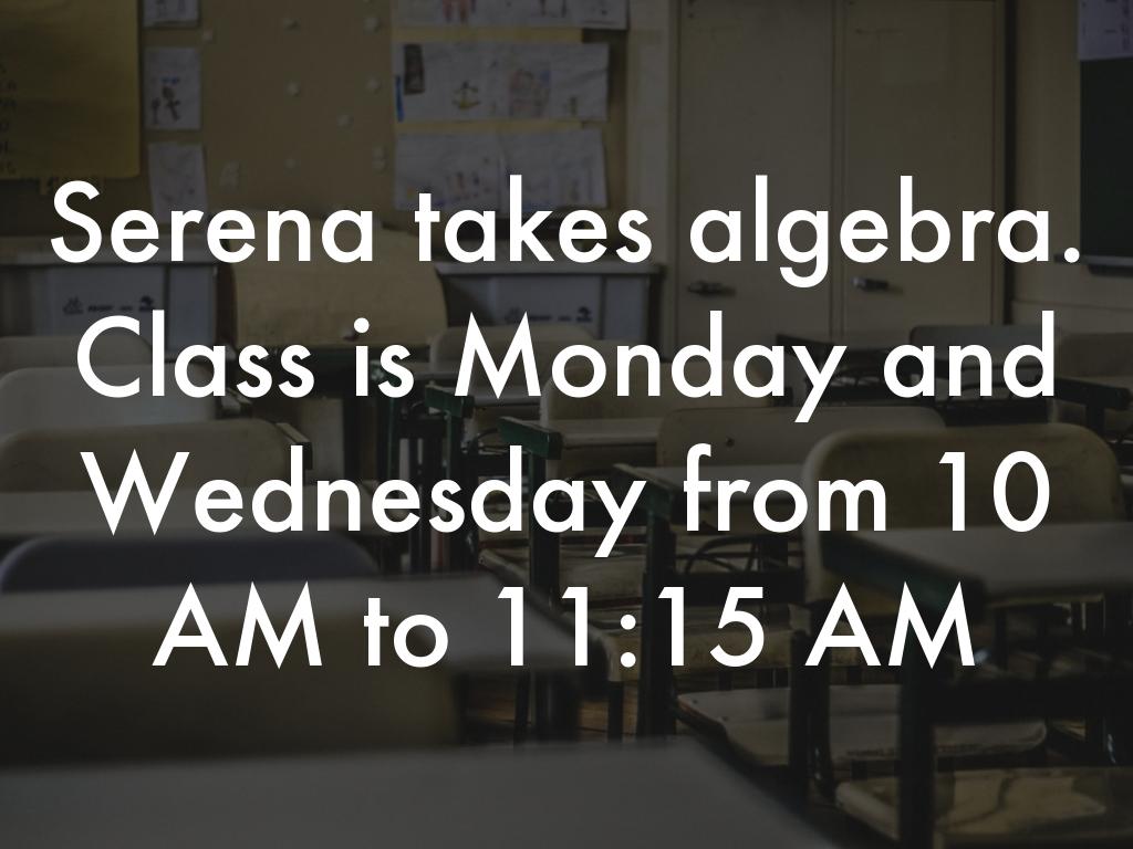 Serena takes algebra. Class is Monday and Wednesday from 10 AM to 11:15 AM