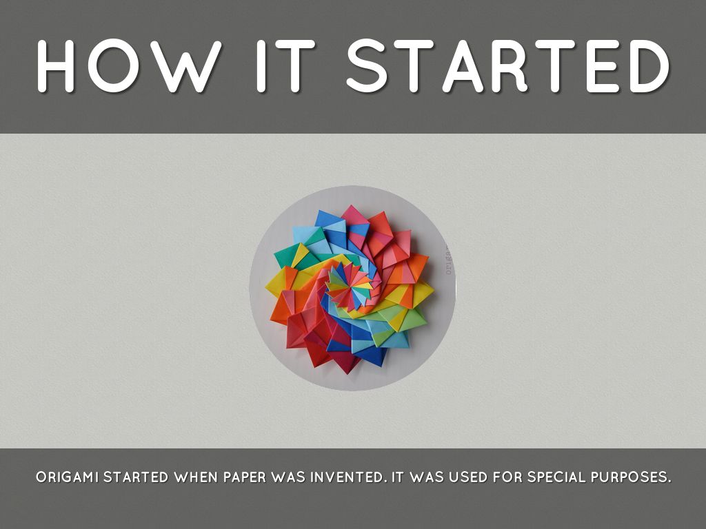 ORIGAMI STARTED WHEN PAPER WAS INVENTED. IT WAS USED FOR SPECIAL PURPOSES.
