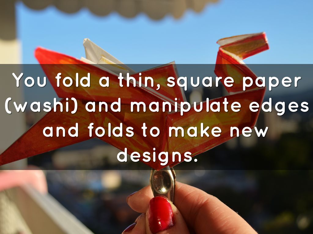 You fold a thin, square paper (washi) and manipulate edges and folds to make new designs.
