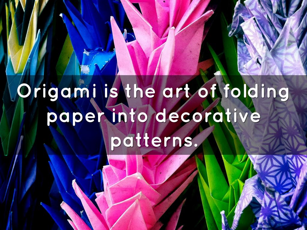 Origami is the art of folding paper into decorative patterns.
