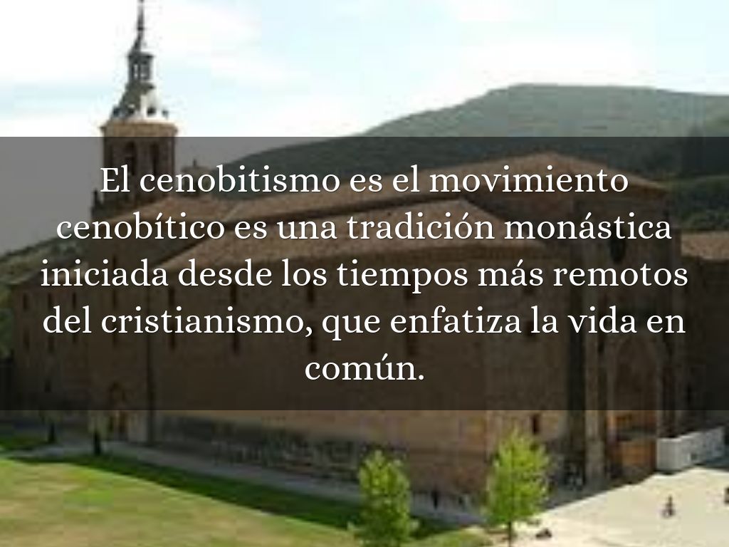 El cenobitismo es el movimiento cenobítico es una tradición monástica iniciada desde los tiempos más remotos del cristianismo, que enfatiza la vida en común.