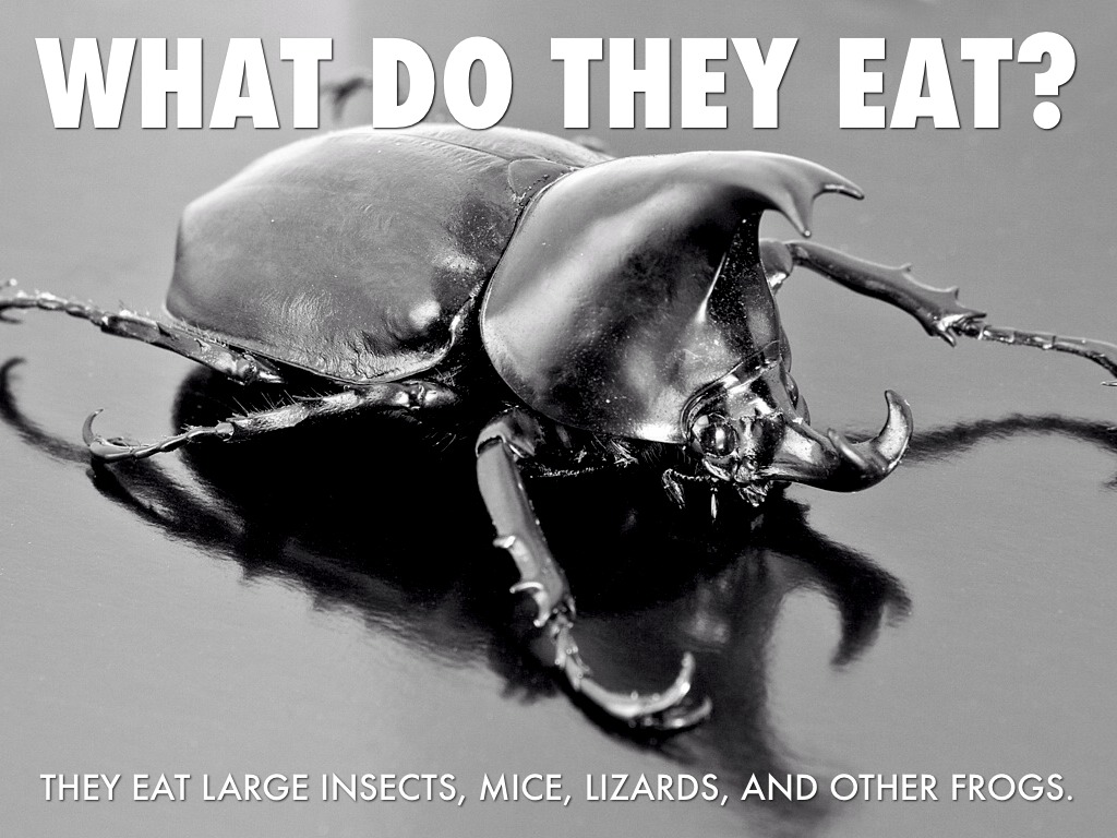 THEY EAT LARGE INSECTS, MICE, LIZARDS, AND OTHER FROGS.