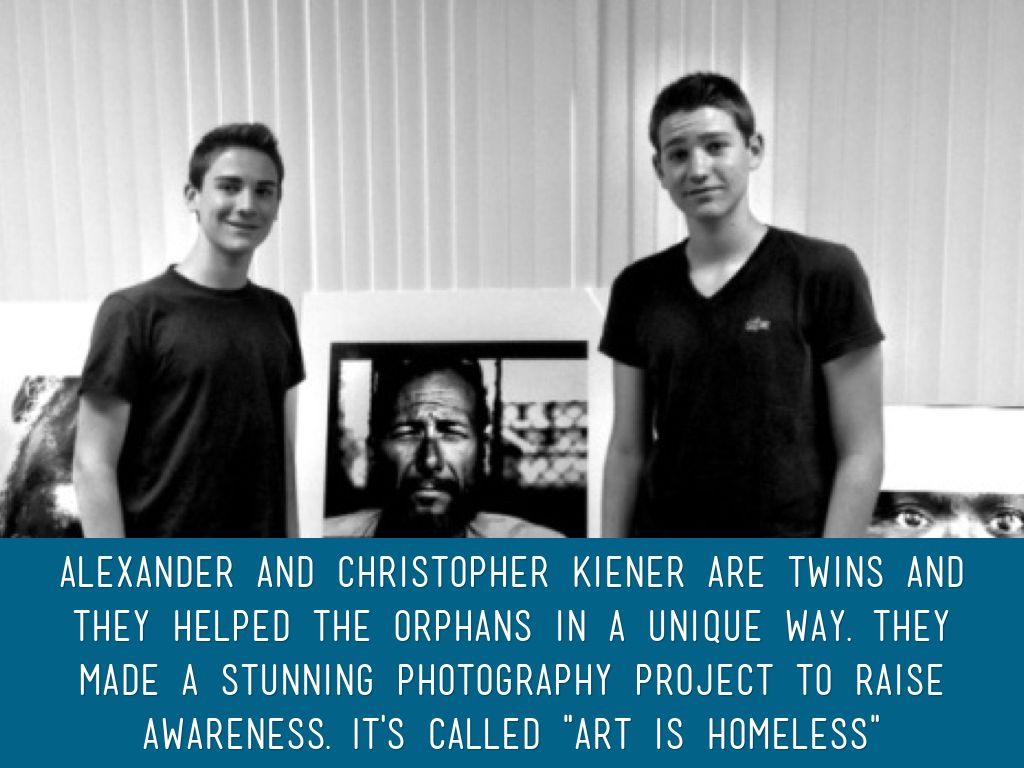 Alexander and Christopher Kiener are twins and they helped the orphans in a unique way. They made a stunning photography project to raise awareness. It's called "Art is Homeless"