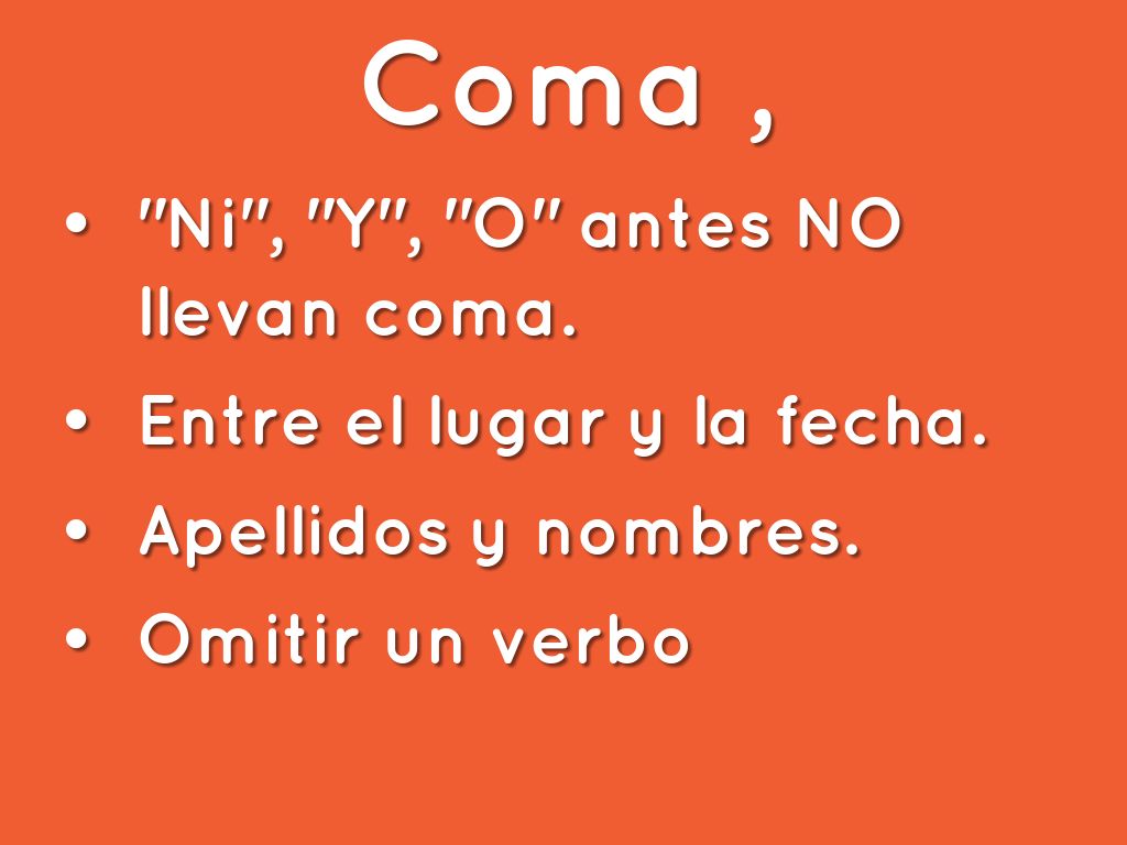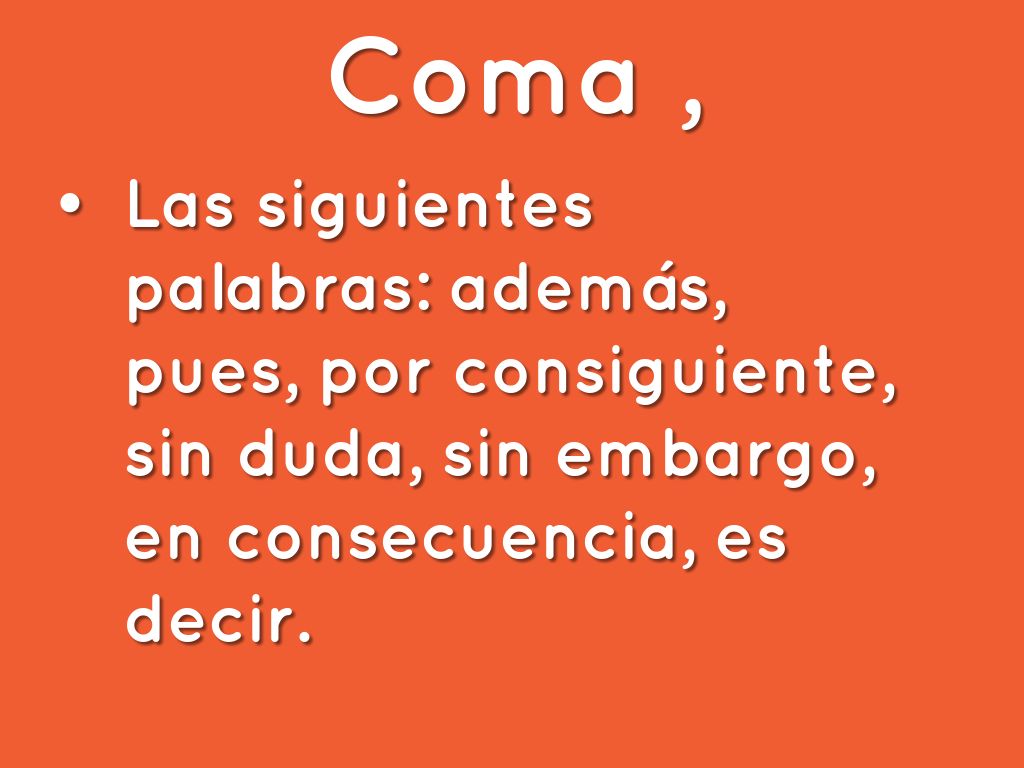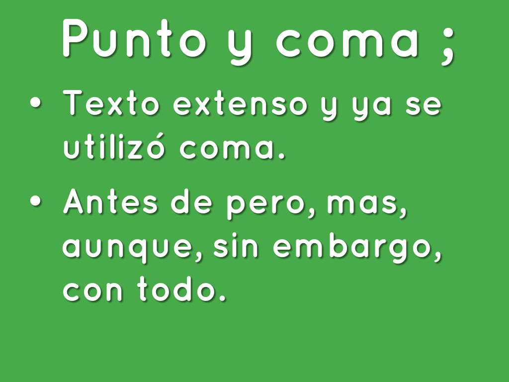 - Antes de pero, mas, aunque, sin embargo, con todo.