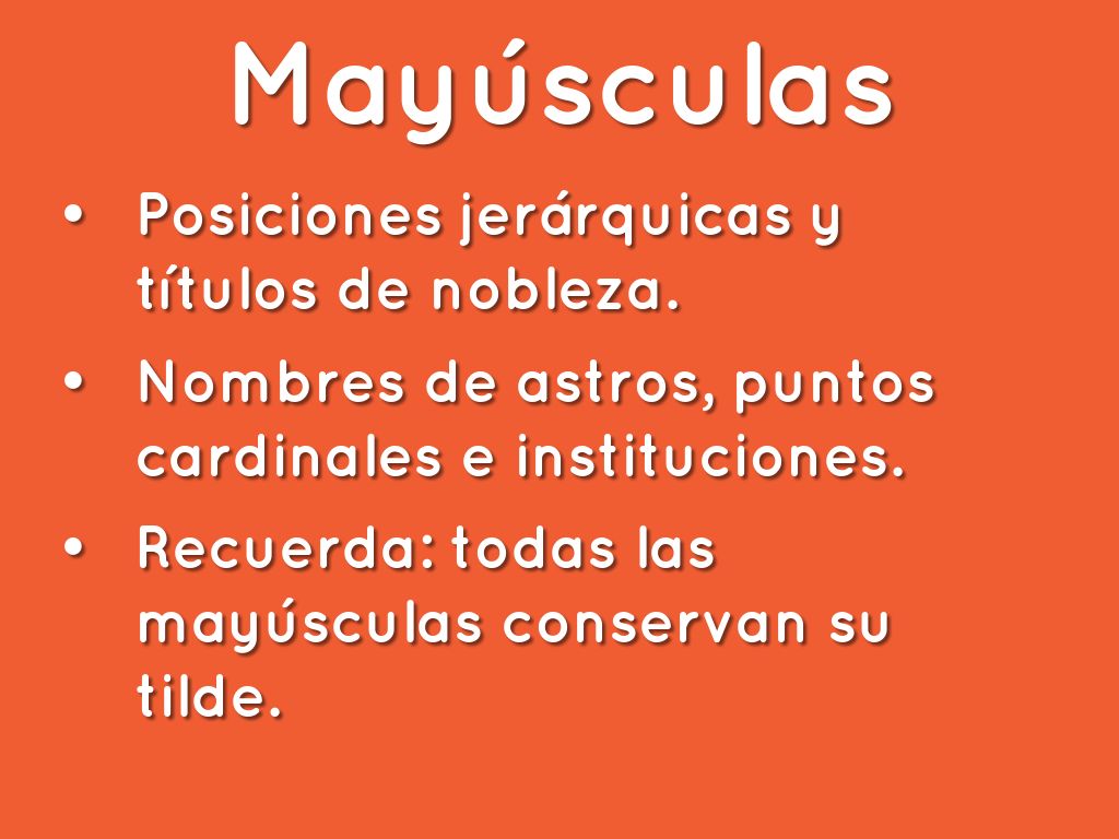 - Recuerda: todas las mayúsculas conservan su tilde.
