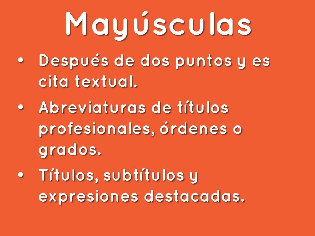 - Abreviaturas de títulos profesionales, órdenes o grados.