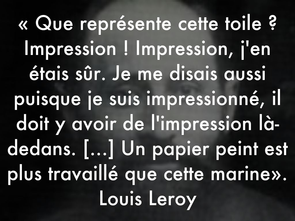 « Que représente cette toile ? Impression ! Impression, j'en étais sûr. Je me disais aussi puisque je suis impressionné, il doit y avoir de l'impression là-dedans. […] Un papier peint est plus travaillé que cette marine». Louis Leroy