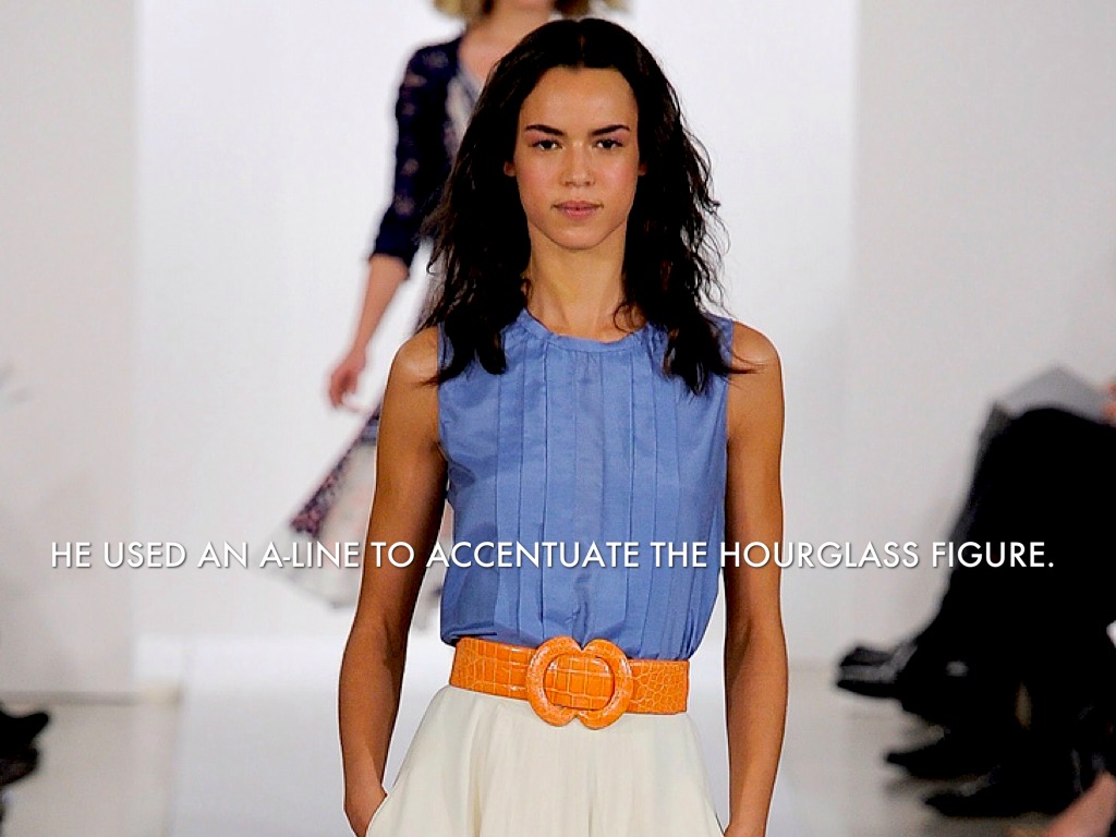 HE USED AN A-LINE TO ACCENTUATE THE HOURGLASS FIGURE.