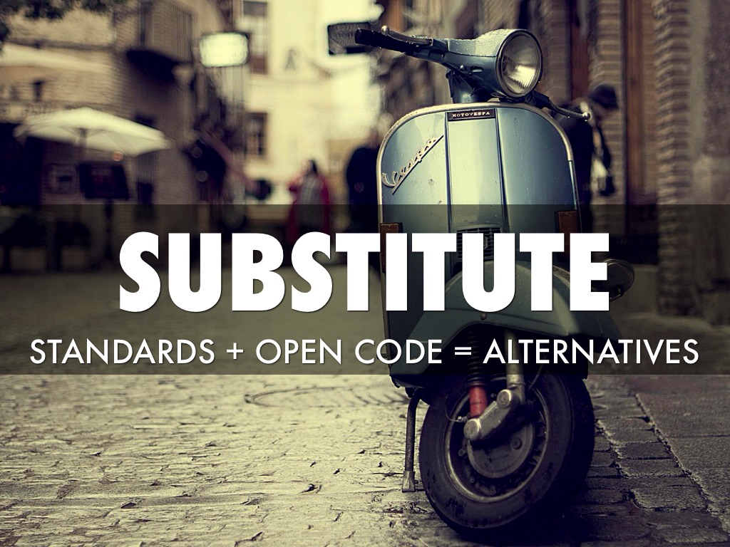STANDARDS + OPEN CODE = ALTERNATIVES