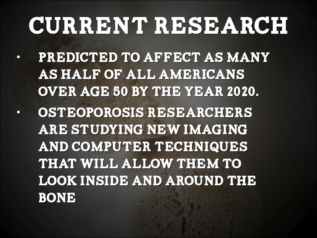 Osteoporosis researchers are studying new imaging and computer techniques that will allow them to look inside and around the bone