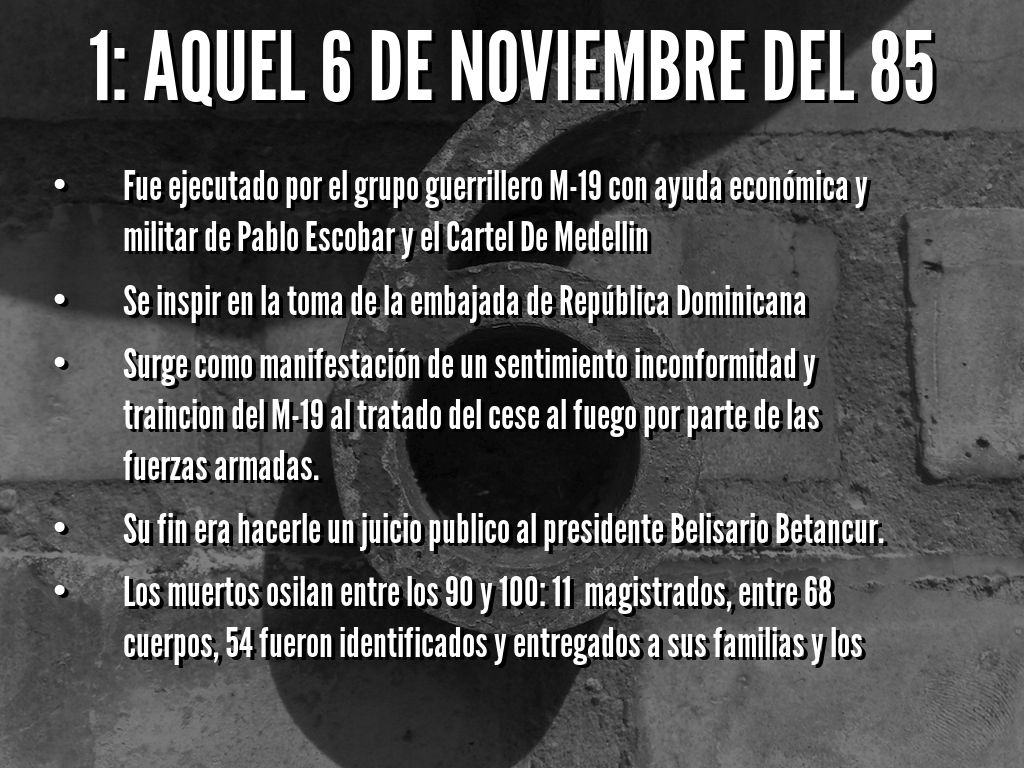 Fue ejecutado por el grupo guerrillero M-19 con ayuda económica y militar de Pablo Escobar y el Cartel De Medellin