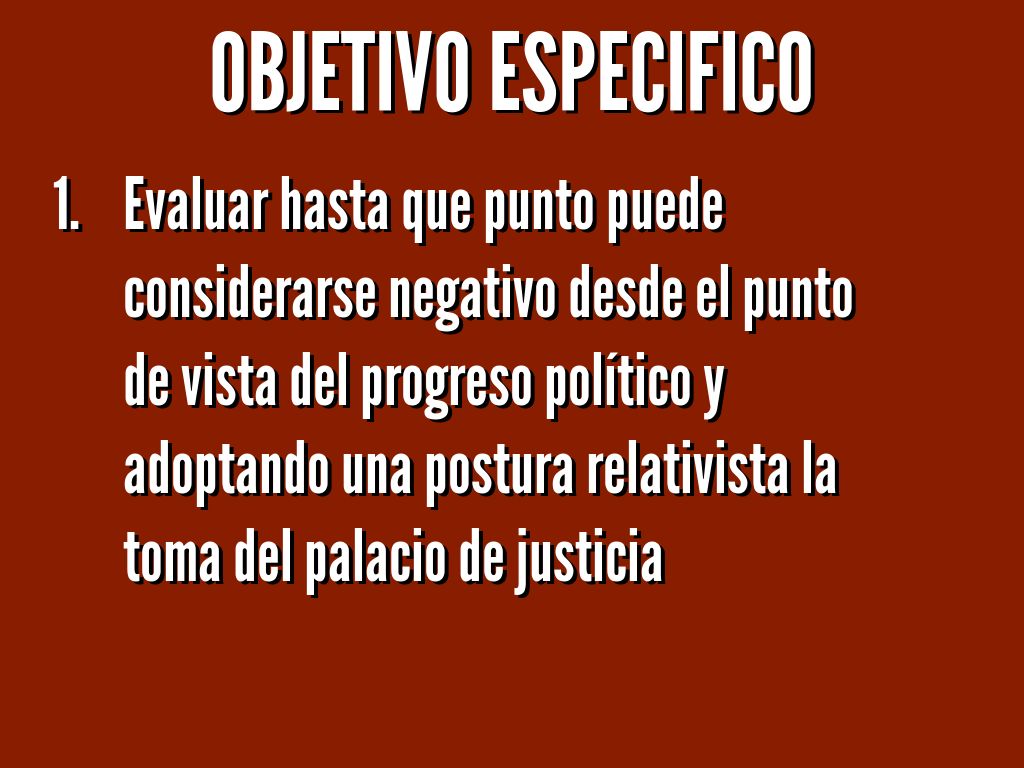 Evaluar hasta que punto puede considerarse negativo desde el punto de vista del progreso político y adoptando una postura relativista la toma del palacio de justicia