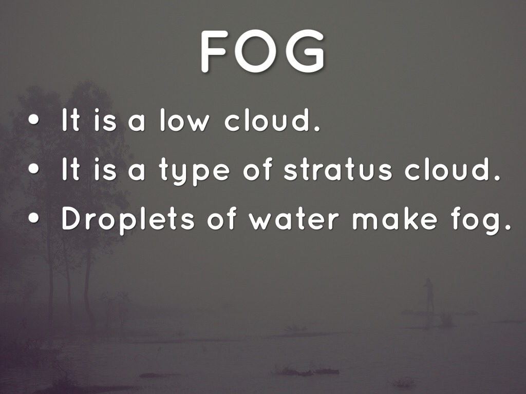 Droplets of water make fog.