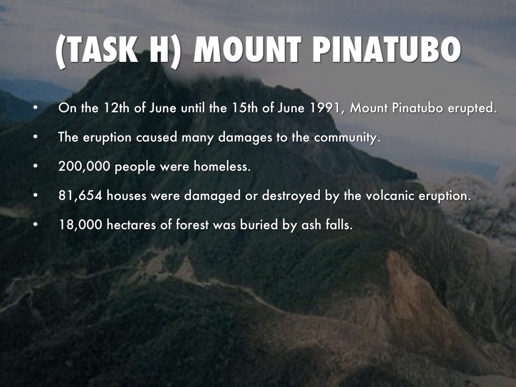 On the 12th of June until the 15th of June 1991, Mount Pinatubo erupted.