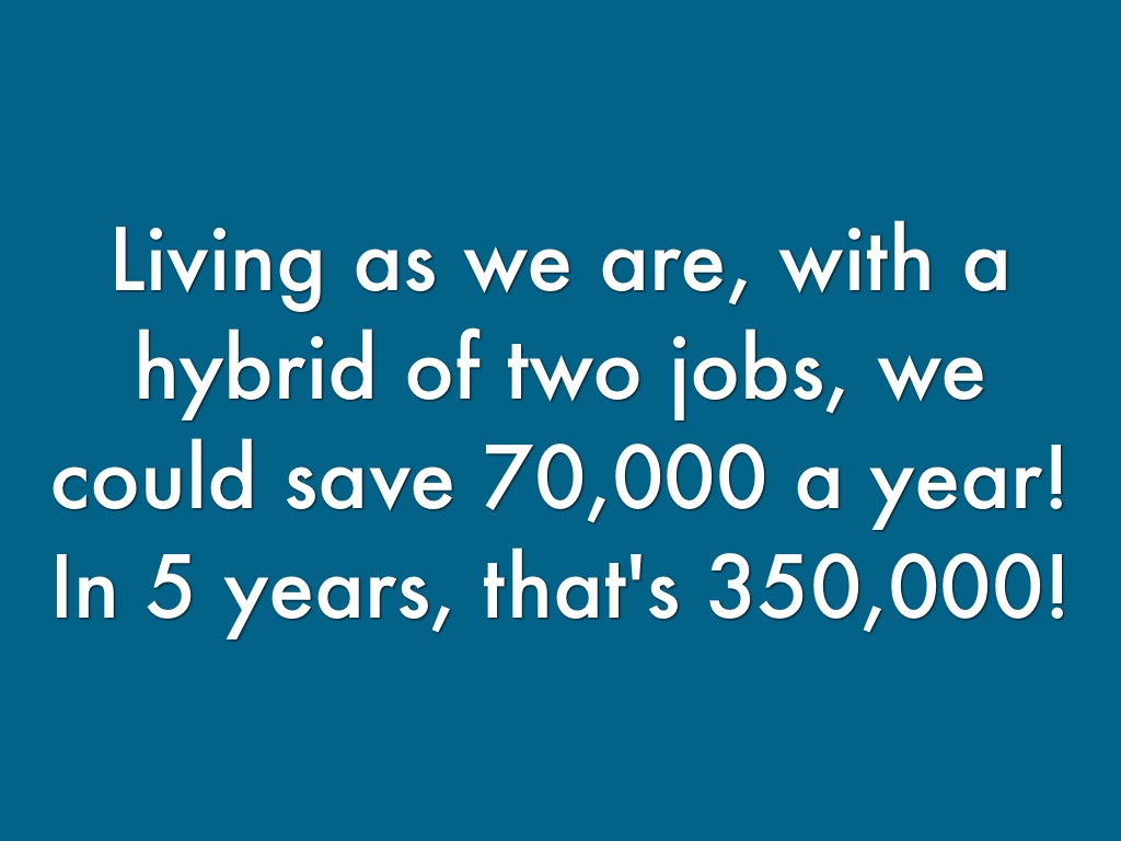 Living as we are, with a hybrid of two jobs, we could save 70,000 a year!