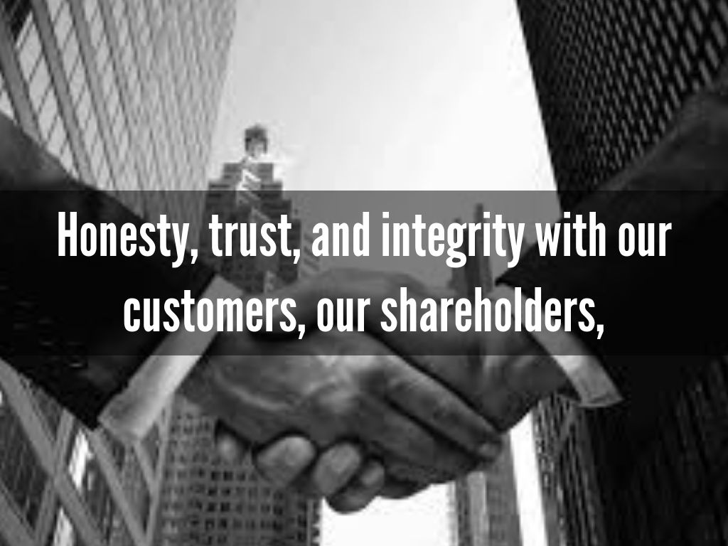 Honesty, trust, and integrity with our customers, our shareholders,