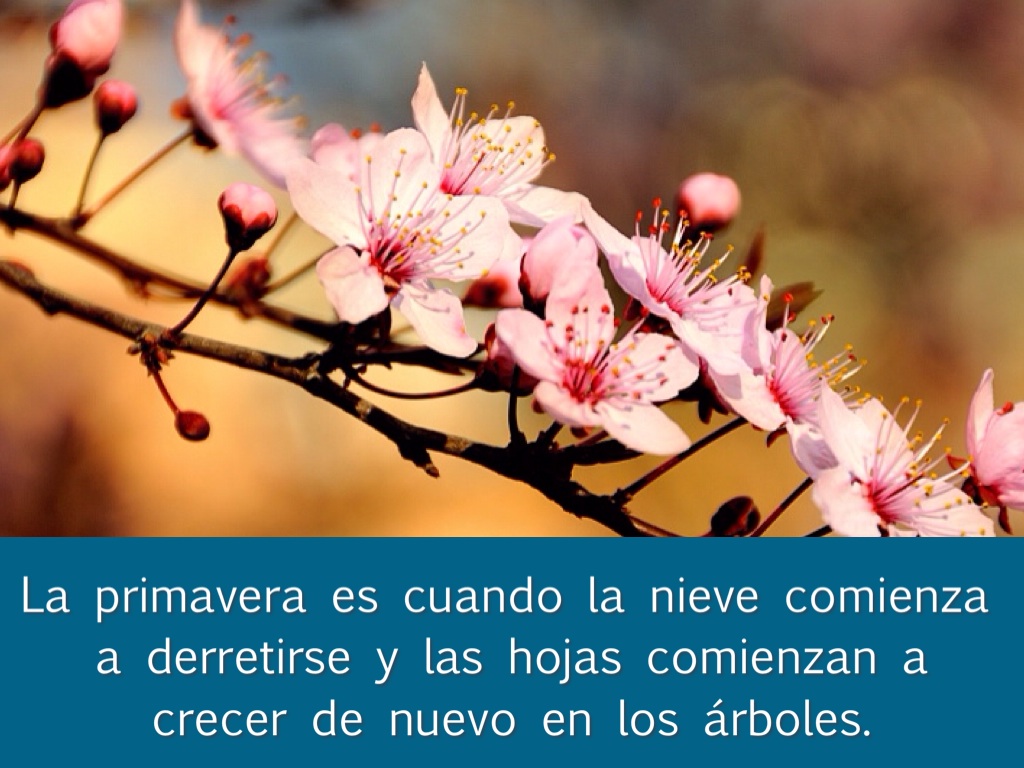 La primavera es cuando la nieve comienza a derretirse y las hojas comienzan a crecer de nuevo en los árboles.