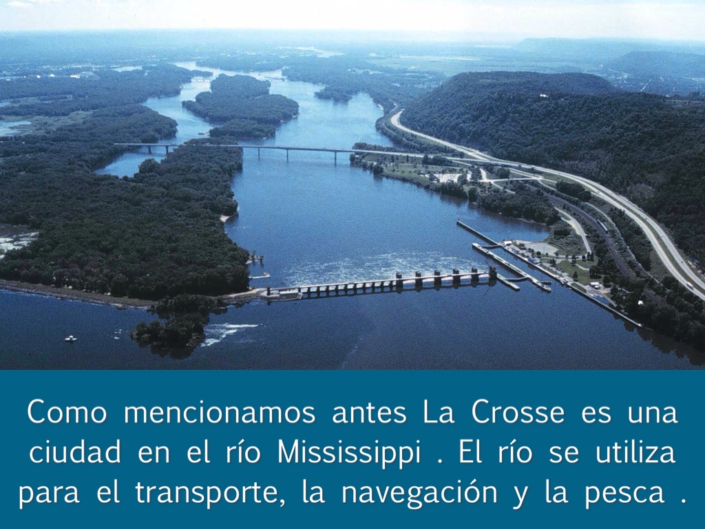 Como mencionamos antes La Crosse es una ciudad en el río Mississippi . El río se utiliza para el transporte, la navegación y la pesca .