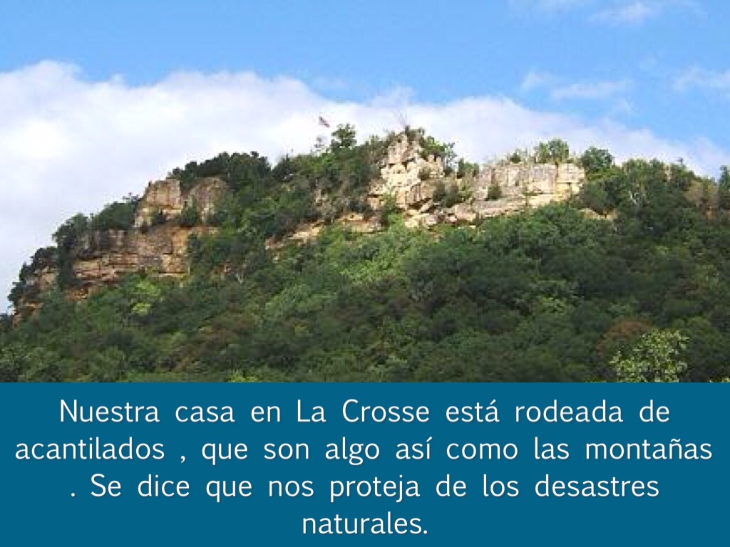 Nuestra casa en La Crosse está rodeada de acantilados , que son algo así como las montañas . Se dice que nos proteja de los desastres naturales.
