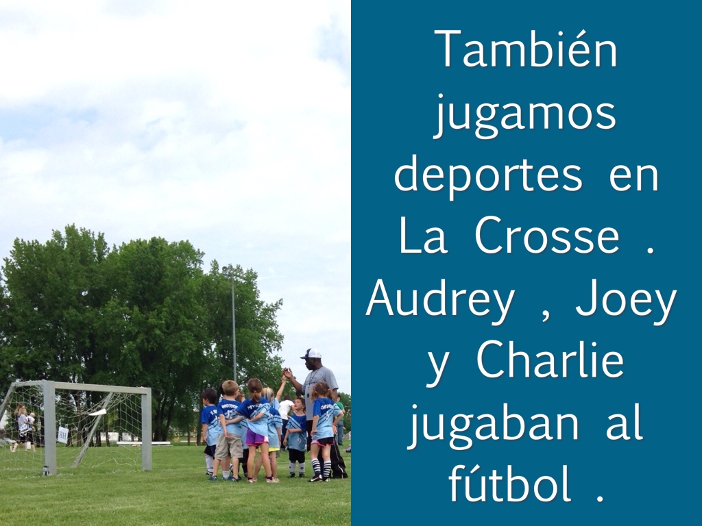 También jugamos deportes en La Crosse . Audrey , Joey y Charlie jugaban al fútbol .
